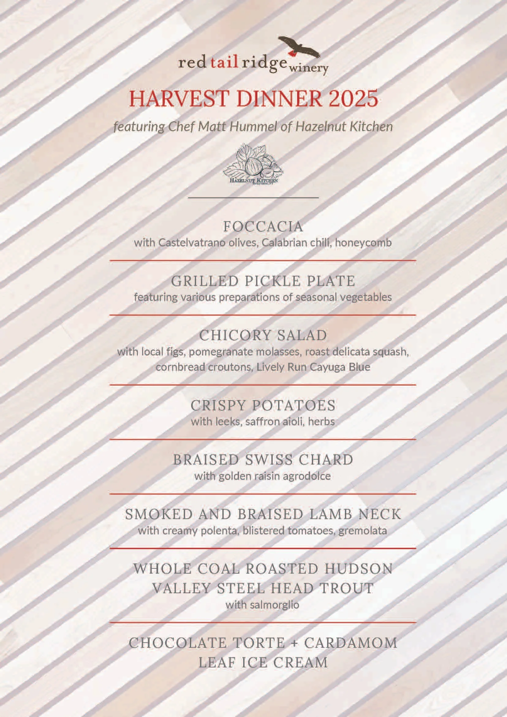 Upcoming Events We’ll be at Red Tail Ridge Sunday September 21st for a communal harvest dinner! Tickets can be purchased here. Book Now!